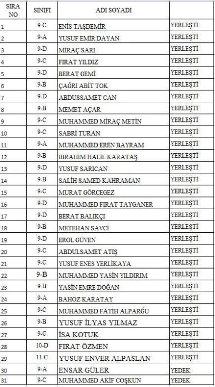 2025 - 2026 ÖĞRETİM YILI PANSİYON YERLEŞTİRME SONUÇLARI